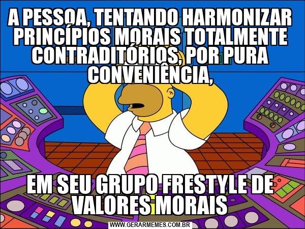 A PESSOA, TENTANDO HARMONIZAR PRINCÍPIOS MORAIS TOTALMENTE CONTRADITÓRIOS, POR PURA CONVENIÊNCIA, EM SEU GRUPO FRESTYLE DE VALORES MORAIS