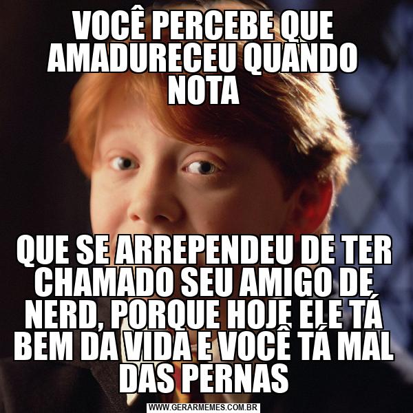 VOCÊ PERCEBE QUE AMADURECEU QUANDO NOTA QUE SE ARREPENDEU DE TER CHAMADO SEU AMIGO DE NERD, PORQUE HOJE ELE TÁ BEM DA VIDA E VOCÊ TÁ MAL DAS PERNAS