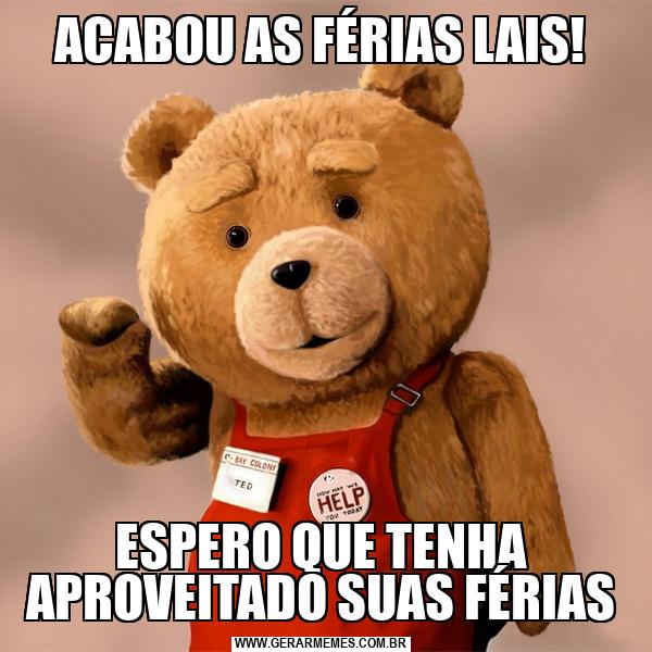 ACABOU AS FÉRIAS LAIS! ESPERO QUE TENHA APROVEITADO SUAS FÉRIAS