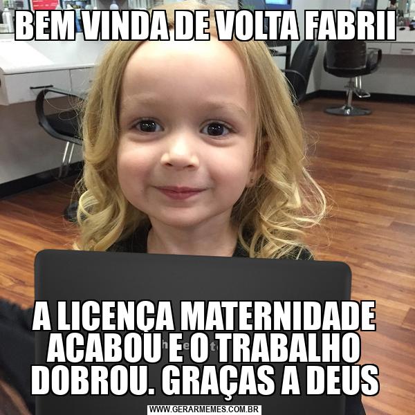 BEM VINDA DE VOLTA FABRII A LICENÇA MATERNIDADE ACABOU E O TRABALHO DOBROU. GRAÇAS A DEUS