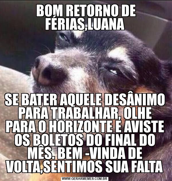BOM RETORNO DE FÉRIAS,LUANA SE BATER AQUELE DESÂNIMO PARA TRABALHAR, OLHE PARA O HORIZONTE E AVISTE OS BOLETOS DO FINAL DO MÊS. BEM -VINDA DE VOLTA,SENTIMOS SUA FALTA