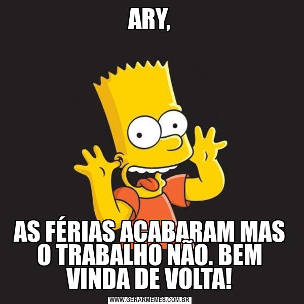 ARY, AS FÉRIAS ACABARAM MAS O TRABALHO NÃO. BEM VINDA DE VOLTA!