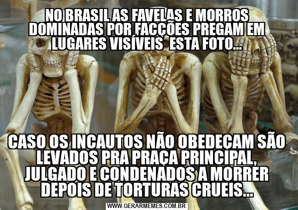 NO BRASIL AS FAVELAS E MORROS DOMINADAS POR FACÇÕES PREGAM EM LUGARES VISÍVEIS ESTA FOTO... CASO OS INCAUTOS NÃO OBEDEÇAM SÃO LEVADOS PRA PRAÇA PRINCIPAL, JULGADO E CONDENADOS A MORRER DEPOIS DE TORTURAS CRUEIS...