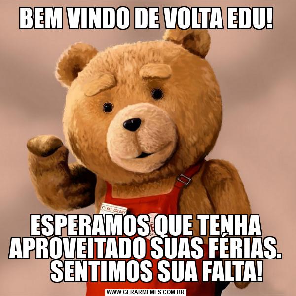 BEM VINDO DE VOLTA EDU! ESPERAMOS QUE TENHA APROVEITADO SUAS FÉRIAS. SENTIMOS SUA FALTA!