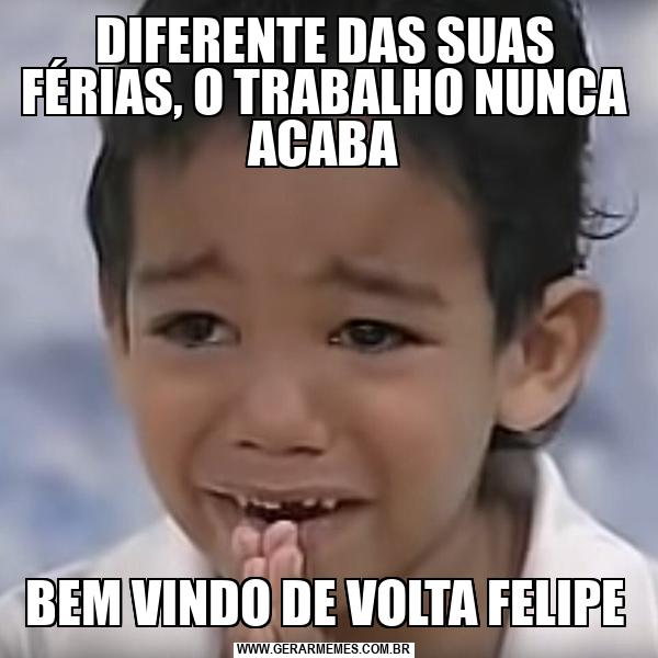 DIFERENTE DAS SUAS FÉRIAS, O TRABALHO NUNCA ACABA BEM VINDO DE VOLTA FELIPE