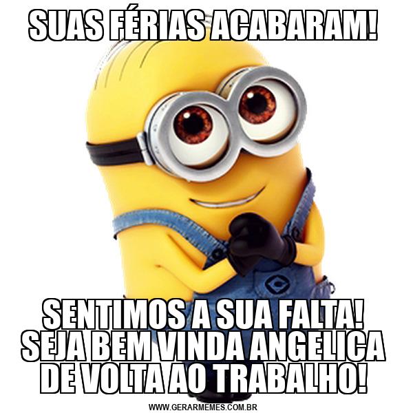 SUAS FÉRIAS ACABARAM! SENTIMOS A SUA FALTA! SEJA BEM VINDA ANGELICA DE VOLTA AO TRABALHO!