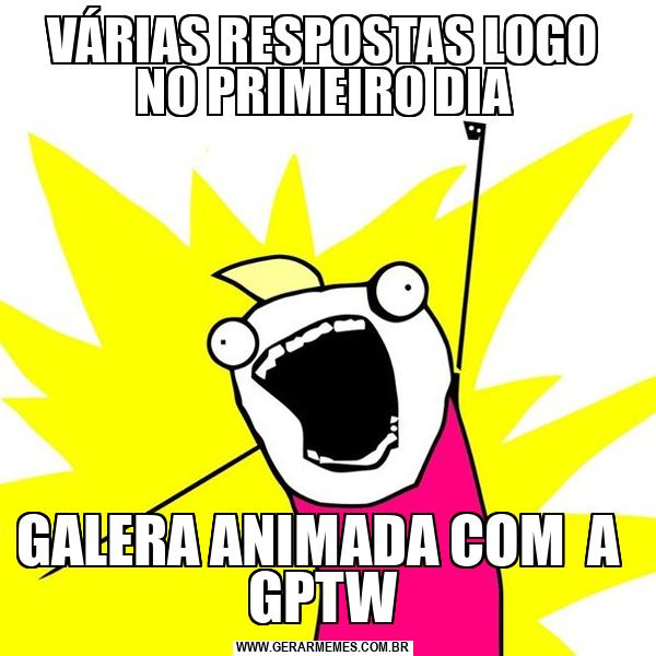 VÁRIAS RESPOSTAS LOGO NO PRIMEIRO DIA GALERA ANIMADA COM A GPTW