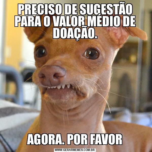 PRECISO DE SUGESTÃO PARA O VALOR MÉDIO DE DOAÇÃO. AGORA. POR FAVOR