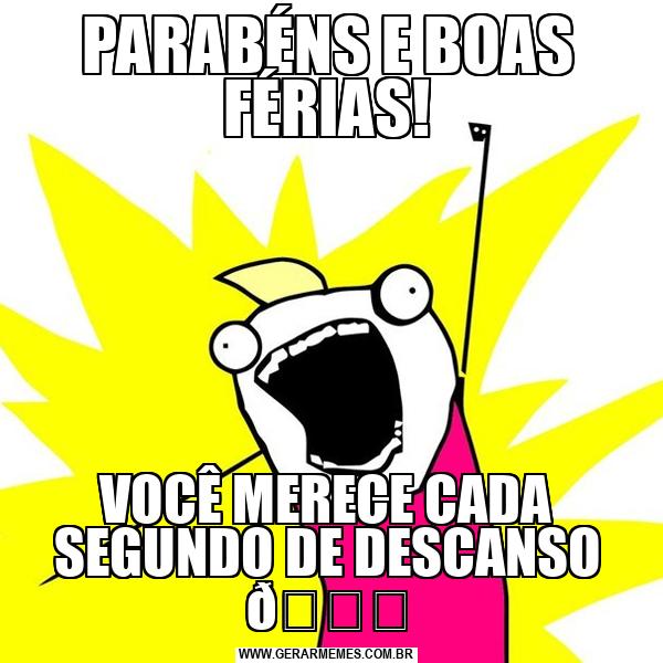 PARABÉNS E BOAS FÉRIAS! VOCÊ MERECE CADA SEGUNDO DE DESCANSO