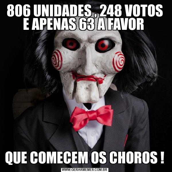 806 UNIDADES , 248 VOTOS E APENAS 63 A FAVOR QUE COMECEM OS CHOROS !