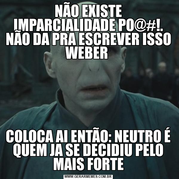 NÃO EXISTE IMPARCIALIDADE PO@#!. NÃO DA PRA ESCREVER ISSO WEBER COLOCA AI ENTÃO: NEUTRO É QUEM JA SE DECIDIU PELO MAIS FORTE