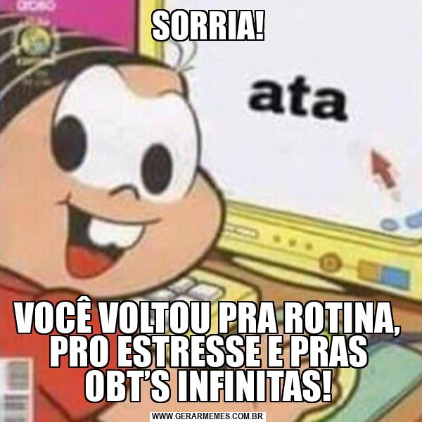 SORRIA! VOCÊ VOLTOU PRA ROTINA, PRO ESTRESSE E PRAS OBT’S INFINITAS!