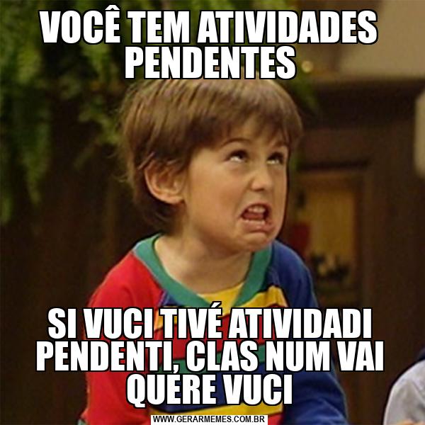 VOCÊ TEM ATIVIDADES PENDENTES SI VUCI TIVÉ ATIVIDADI PENDENTI, CLAS NUM VAI QUERE VUCI