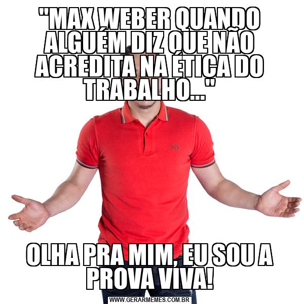 "MAX WEBER QUANDO ALGUÉM DIZ QUE NÃO ACREDITA NA ÉTICA DO TRABALHO..." OLHA PRA MIM, EU SOU A PROVA VIVA!