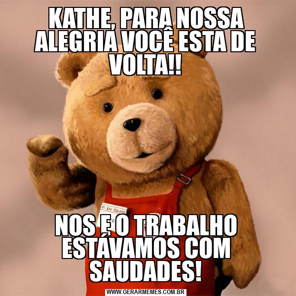 KATHE, PARA NOSSA ALEGRIA VOCÊ ESTA DE VOLTA!! NOS E O TRABALHO ESTÁVAMOS COM SAUDADES!