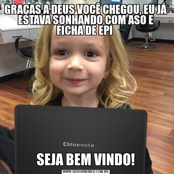 GRAÇAS A DEUS VOCÊ CHEGOU, EU JÁ ESTAVA SONHANDO COM ASO E FICHA DE EPI SEJA BEM VINDO!