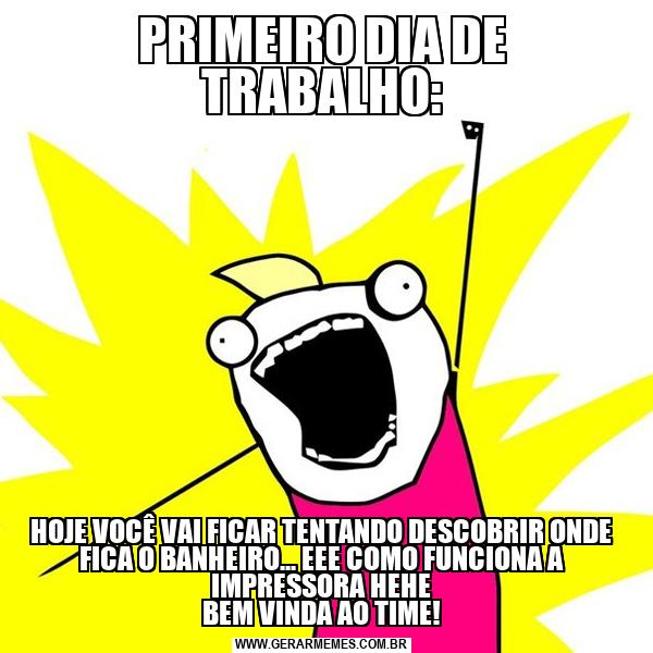 PRIMEIRO DIA DE TRABALHO: HOJE VOCÊ VAI FICAR TENTANDO DESCOBRIR ONDE FICA O BANHEIRO... EEE COMO FUNCIONA A IMPRESSORA HEHE BEM VINDA AO TIME!