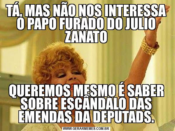 TÁ, MAS NÃO NOS INTERESSA O PAPO FURADO DO JULIO ZANATO QUEREMOS MESMO É SABER SOBRE ESCÂNDALO DAS EMENDAS DA DEPUTADS.