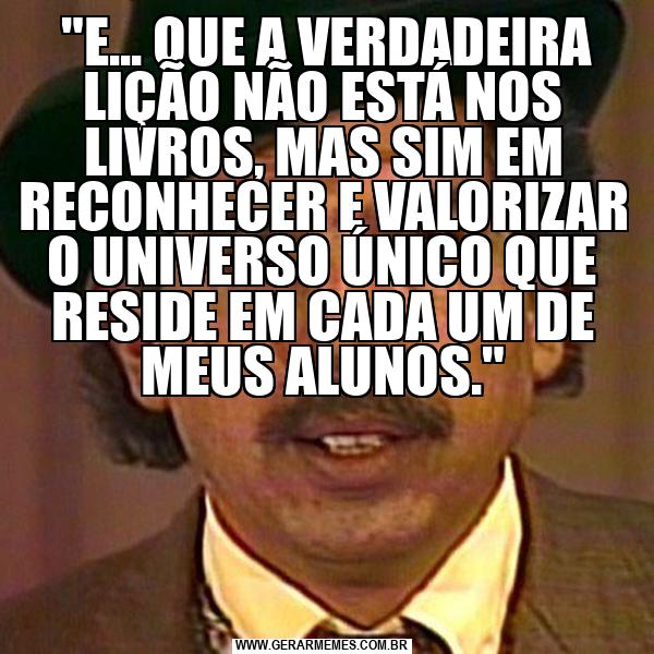 "E... QUE A VERDADEIRA LIÇÃO NÃO ESTÁ NOS LIVROS, MAS SIM EM RECONHECER E VALORIZAR O UNIVERSO ÚNICO QUE RESIDE EM CADA UM DE MEUS ALUNOS."