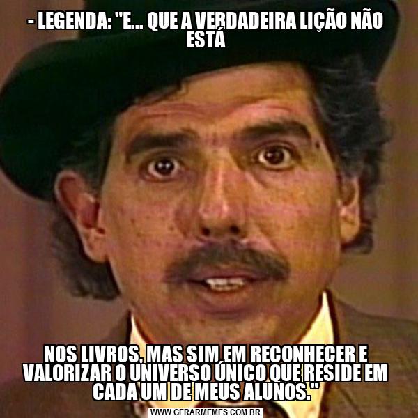 - LEGENDA: "E... QUE A VERDADEIRA LIÇÃO NÃO ESTÁ NOS LIVROS, MAS SIM EM RECONHECER E VALORIZAR O UNIVERSO ÚNICO QUE RESIDE EM CADA UM DE MEUS ALUNOS."