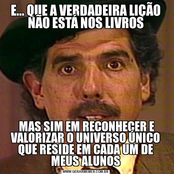 E... QUE A VERDADEIRA LIÇÃO NÃO ESTÁ NOS LIVROS MAS SIM EM RECONHECER E VALORIZAR O UNIVERSO ÚNICO QUE RESIDE EM CADA UM DE MEUS ALUNOS