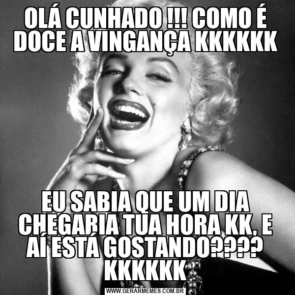 OLÁ CUNHADO !!! COMO É DOCE A VINGANÇA KKKKKK EU SABIA QUE UM DIA CHEGARIA TUA HORA KK, E AÍ ESTÁ GOSTANDO???? KKKKKK