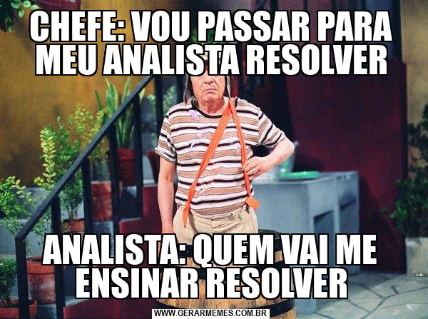 CHEFE: VOU PASSAR PARA MEU ANALISTA RESOLVER ANALISTA: QUEM VAI ME ENSINAR RESOLVER