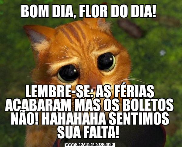 BOM DIA, FLOR DO DIA! LEMBRE-SE: AS FÉRIAS ACABARAM MAS OS BOLETOS NÃO! HAHAHAHA SENTIMOS SUA FALTA!