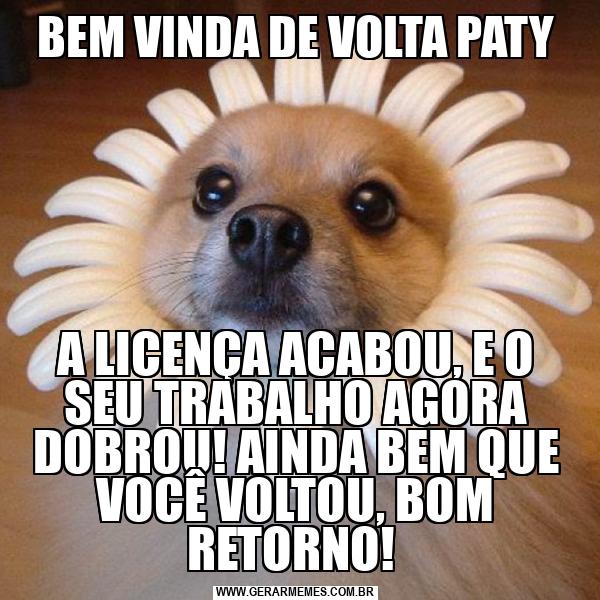 BEM VINDA DE VOLTA PATY A LICENÇA ACABOU, E O SEU TRABALHO AGORA DOBROU! AINDA BEM QUE VOCÊ VOLTOU, BOM RETORNO!