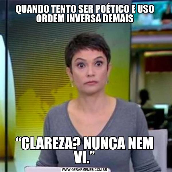 QUANDO TENTO SER POÉTICO E USO ORDEM INVERSA DEMAIS “CLAREZA? NUNCA NEM VI.”