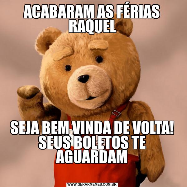 ACABARAM AS FÉRIAS RAQUEL SEJA BEM VINDA DE VOLTA! SEUS BOLETOS TE AGUARDAM