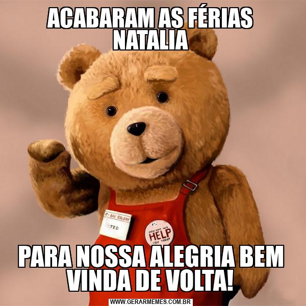 ACABARAM AS FÉRIAS NATALIA PARA NOSSA ALEGRIA BEM VINDA DE VOLTA!