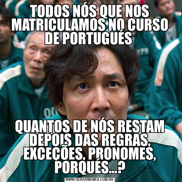 TODOS NÓS QUE NOS MATRICULAMOS NO CURSO DE PORTUGUÉS QUANTOS DE NÓS RESTAM DEPOIS DAS REGRAS, EXCEÇÕES, PRONOMES, PORQUÉS…?