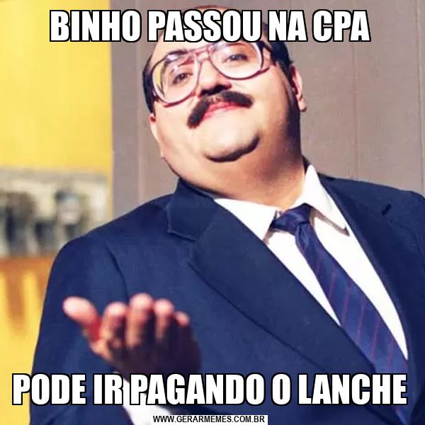 BINHO PASSOU NA CPA PODE IR PAGANDO O LANCHE