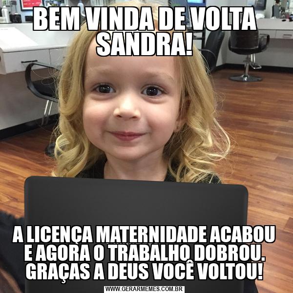 BEM VINDA DE VOLTA SANDRA! A LICENÇA MATERNIDADE ACABOU E AGORA O TRABALHO DOBROU. GRAÇAS A DEUS VOCÊ VOLTOU!