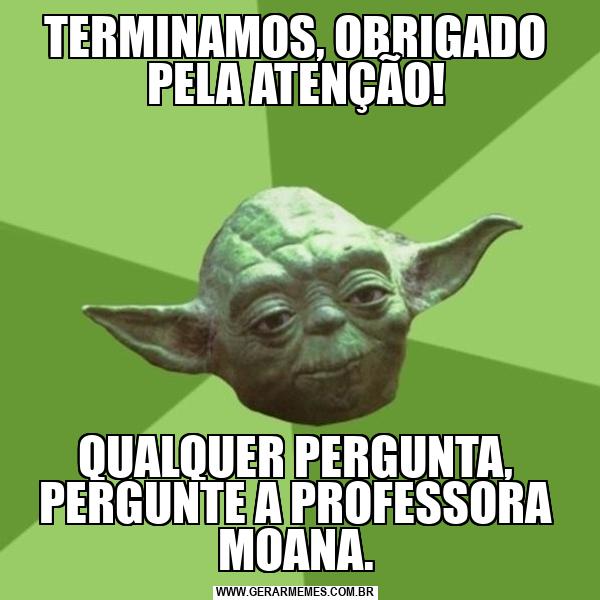 TERMINAMOS, OBRIGADO PELA ATENÇÃO! QUALQUER PERGUNTA, PERGUNTE A PROFESSORA MOANA.