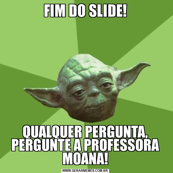 FIM DO SLIDE! QUALQUER PERGUNTA, PERGUNTE A PROFESSORA MOANA!