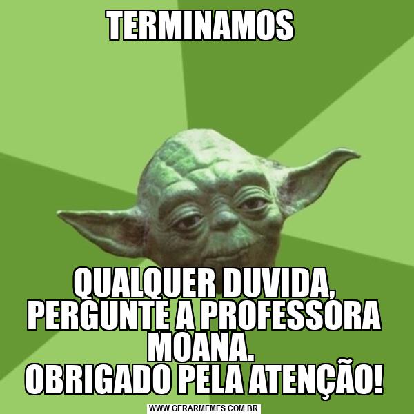 TERMINAMOS QUALQUER DUVIDA, PERGUNTE A PROFESSORA MOANA. OBRIGADO PELA ATENÇÃO!