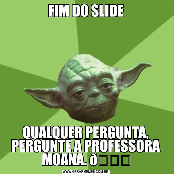 FIM DO SLIDE QUALQUER PERGUNTA, PERGUNTE A PROFESSORA MOANA.