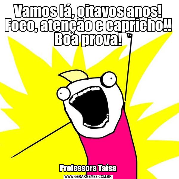 Vamos lá, oitavos anos! Foco, atenção e capricho!! Boa prova! Professora Taísa