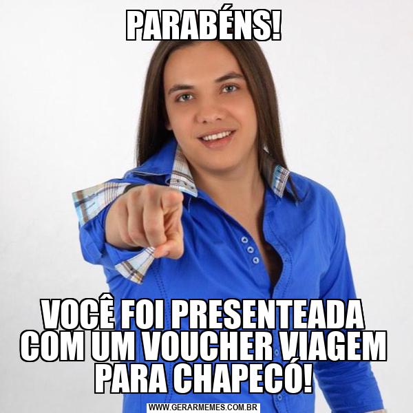 PARABÉNS! VOCÊ FOI PRESENTEADA COM UM VOUCHER VIAGEM PARA CHAPECÓ!