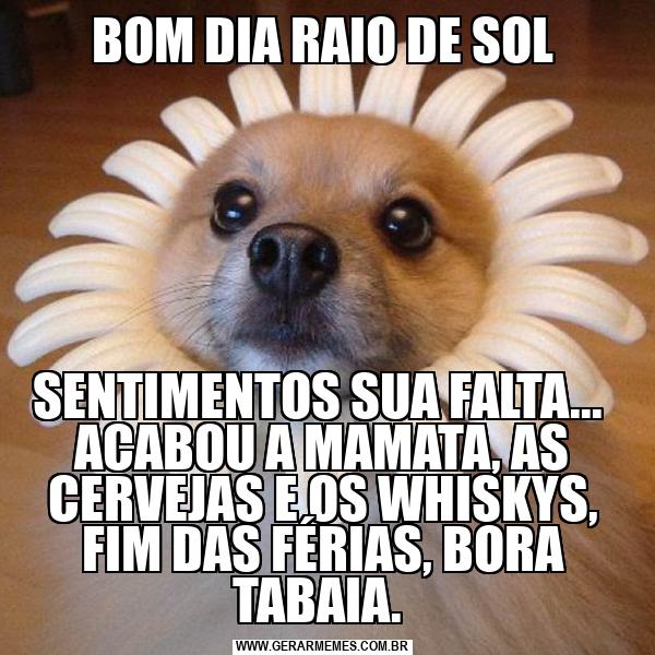 BOM DIA RAIO DE SOL SENTIMENTOS SUA FALTA... ACABOU A MAMATA, AS CERVEJAS E OS WHISKYS, FIM DAS FÉRIAS, BORA TABAIA.