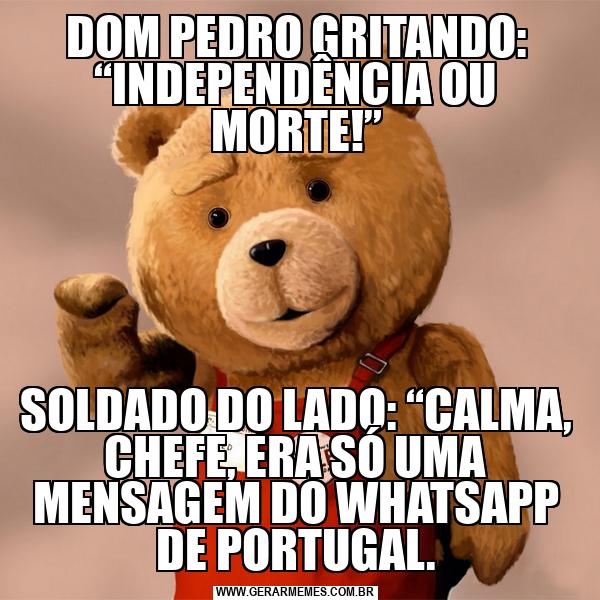 DOM PEDRO GRITANDO: “INDEPENDÊNCIA OU MORTE!” SOLDADO DO LADO: “CALMA, CHEFE, ERA SÓ UMA MENSAGEM DO WHATSAPP DE PORTUGAL.