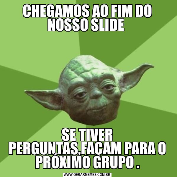 CHEGAMOS AO FIM DO NOSSO SLIDE SE TIVER PERGUNTAS,FAÇAM PARA O PRÓXIMO GRUPO .