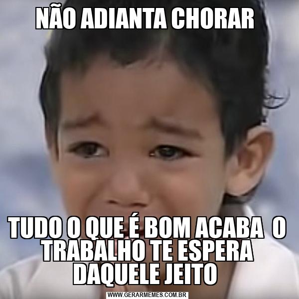 NÃO ADIANTA CHORAR TUDO O QUE É BOM ACABA O TRABALHO TE ESPERA DAQUELE JEITO