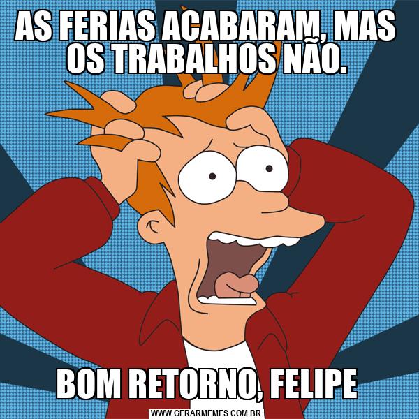 AS FERIAS ACABARAM, MAS OS TRABALHOS NÃO. BOM RETORNO, FELIPE