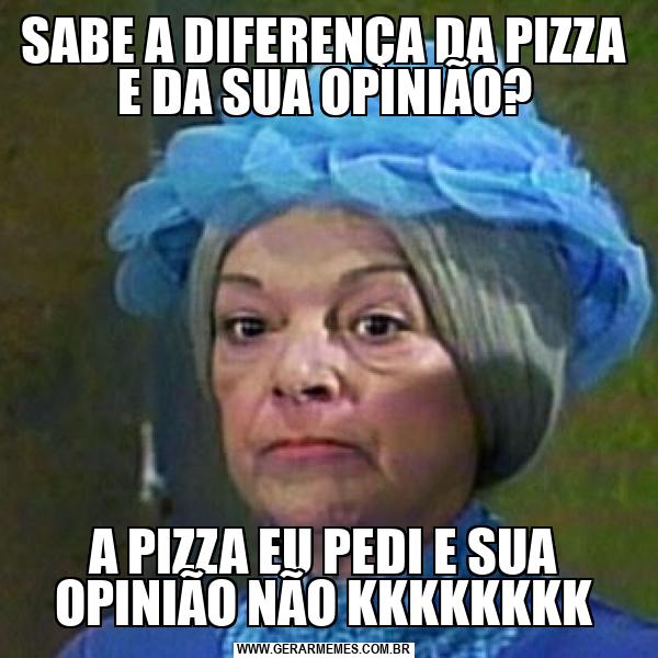 SABE A DIFERENÇA DA PIZZA E DA SUA OPINIÃO? A PIZZA EU PEDI E SUA OPINIÃO NÃO KKKKKKKK