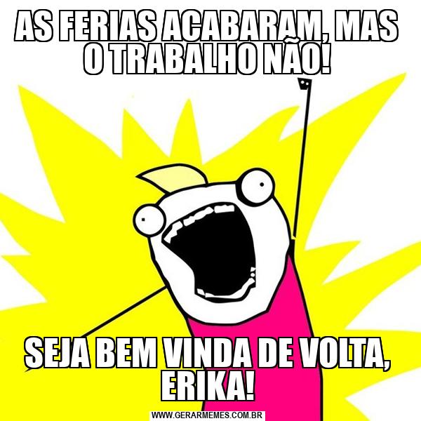 AS FERIAS ACABARAM, MAS O TRABALHO NÃO! SEJA BEM VINDA DE VOLTA, ERIKA!