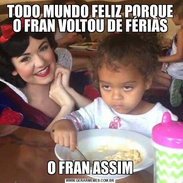 TODO MUNDO FELIZ PORQUE O FRAN VOLTOU DE FÉRIAS O FRAN ASSIM