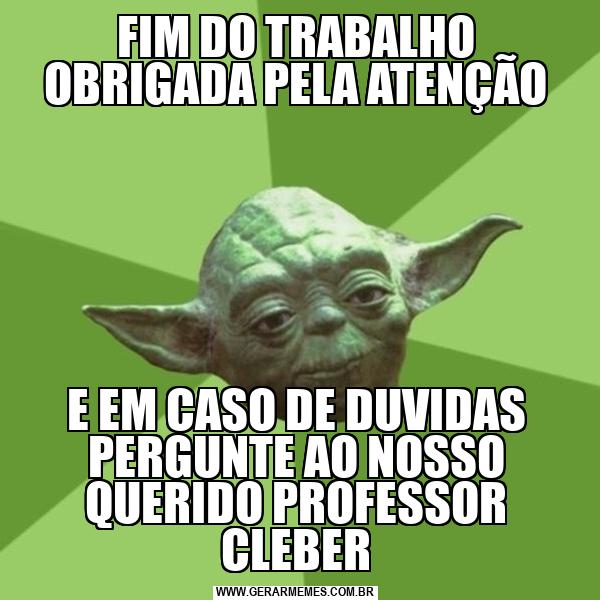 FIM DO TRABALHO OBRIGADA PELA ATENÇÃO E EM CASO DE DUVIDAS PERGUNTE AO NOSSO QUERIDO PROFESSOR CLEBER